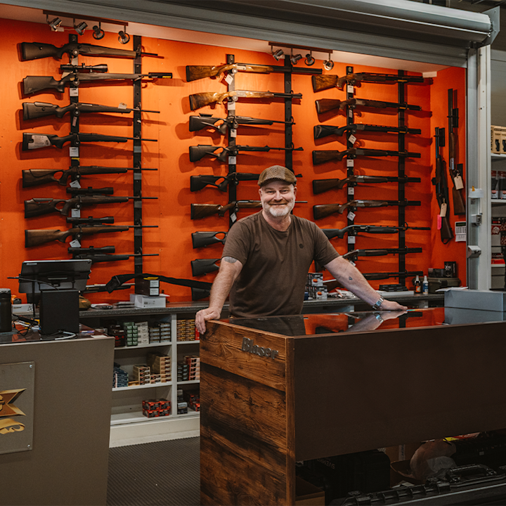 I butikken finner du også en egen jaktavdeling med et stort utvalg av våpen og ammunisjon. Her møter du dyktige jegere og deres ekspertise.